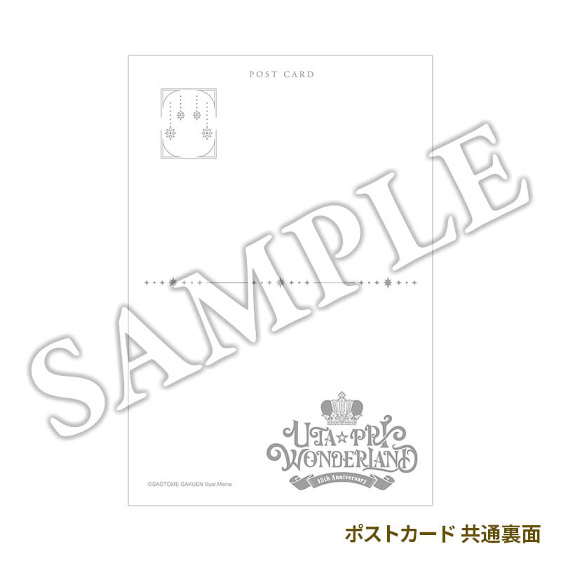 「UTA☆PRI WONDERLAND-15th Anniversary-」事前物販およびWONDERLAND MARKETブース、CD販売ブース、Q-pot.×うたの☆プリンスさまっ♪ Crown Creamy Landブースにて1会計につきお買い上げ税込3,000円ごとに「うたの☆プリンスさまっ♪」特典チケット風カード UTA☆PRI WONDERLAND Ver.(全36種:NORMAL18種/SPECIAL18種)をランダムで1枚プレゼント!(約縦142×横62mm以内)裏面にはアイドルの直筆コメントがプリントされた特別仕様です。SPECIALにはアイドルの箔押しサイン入り!